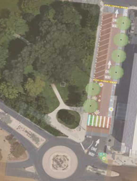 The community has a desire for Park improvements that widen the sidewalk, not only within the park but along the eastern edge of the park as well. There is community support for increased electrical infrastructure to support a diversity of programming, and there is support for increasing the lighting infrastructure.